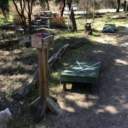 The Wimberley Rotary Club constructed & donated the musical garden board in honor of Rotary's 100th year anniversary. Come and make some music! Mallets are normally available but feel free to bring your own.